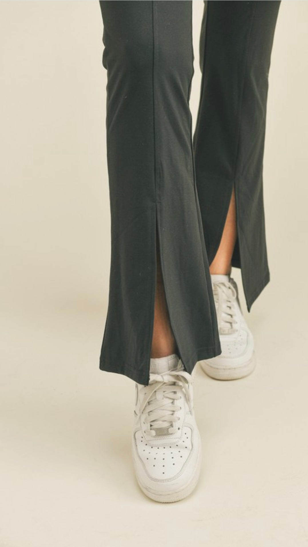 Kick through the front slit of these stretchy, moisture-wicking, high-waisted flare leggings. Bottoms.