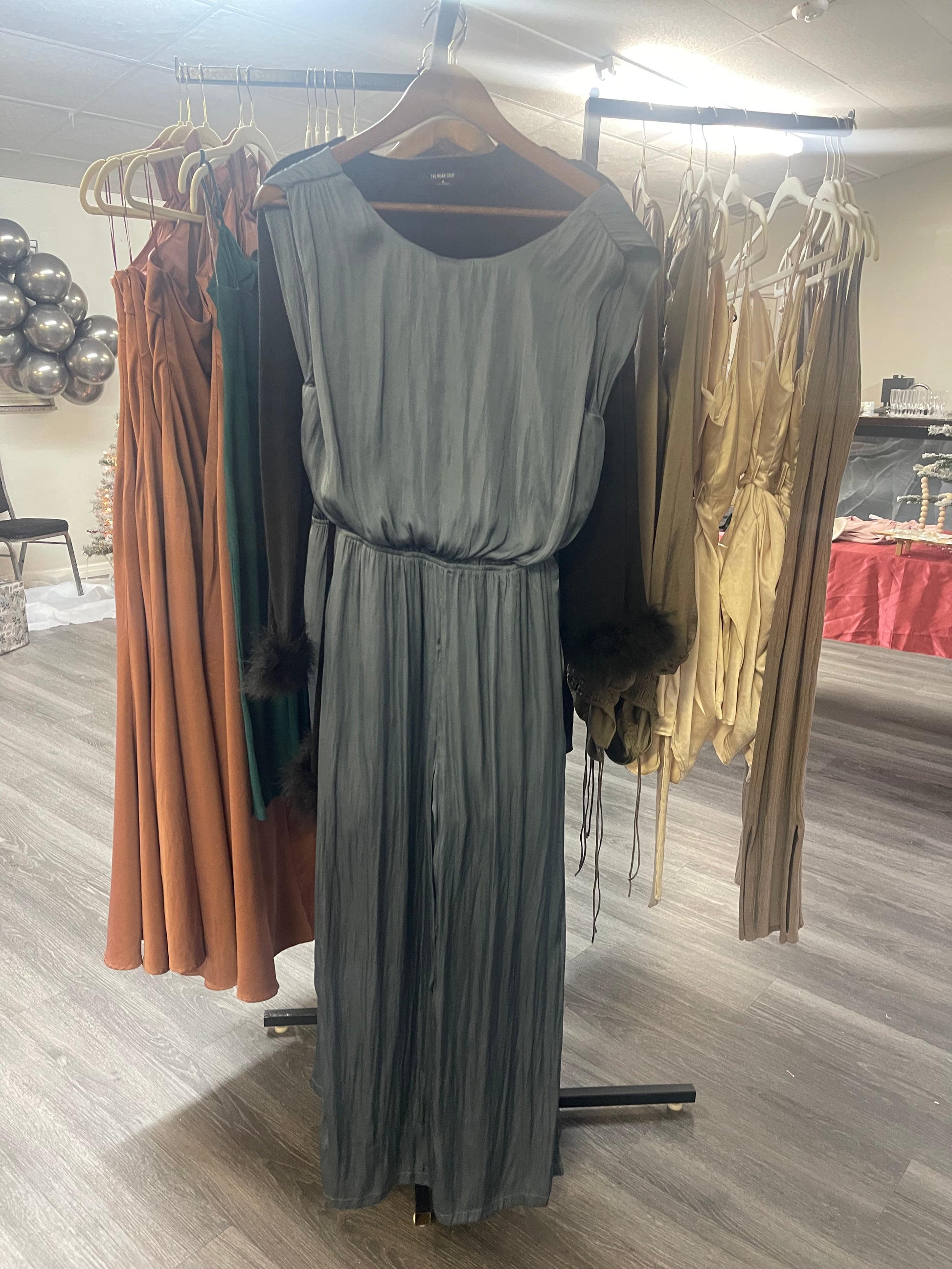 Satin Wide Leg Jumpsuit with Open Back Detail.
