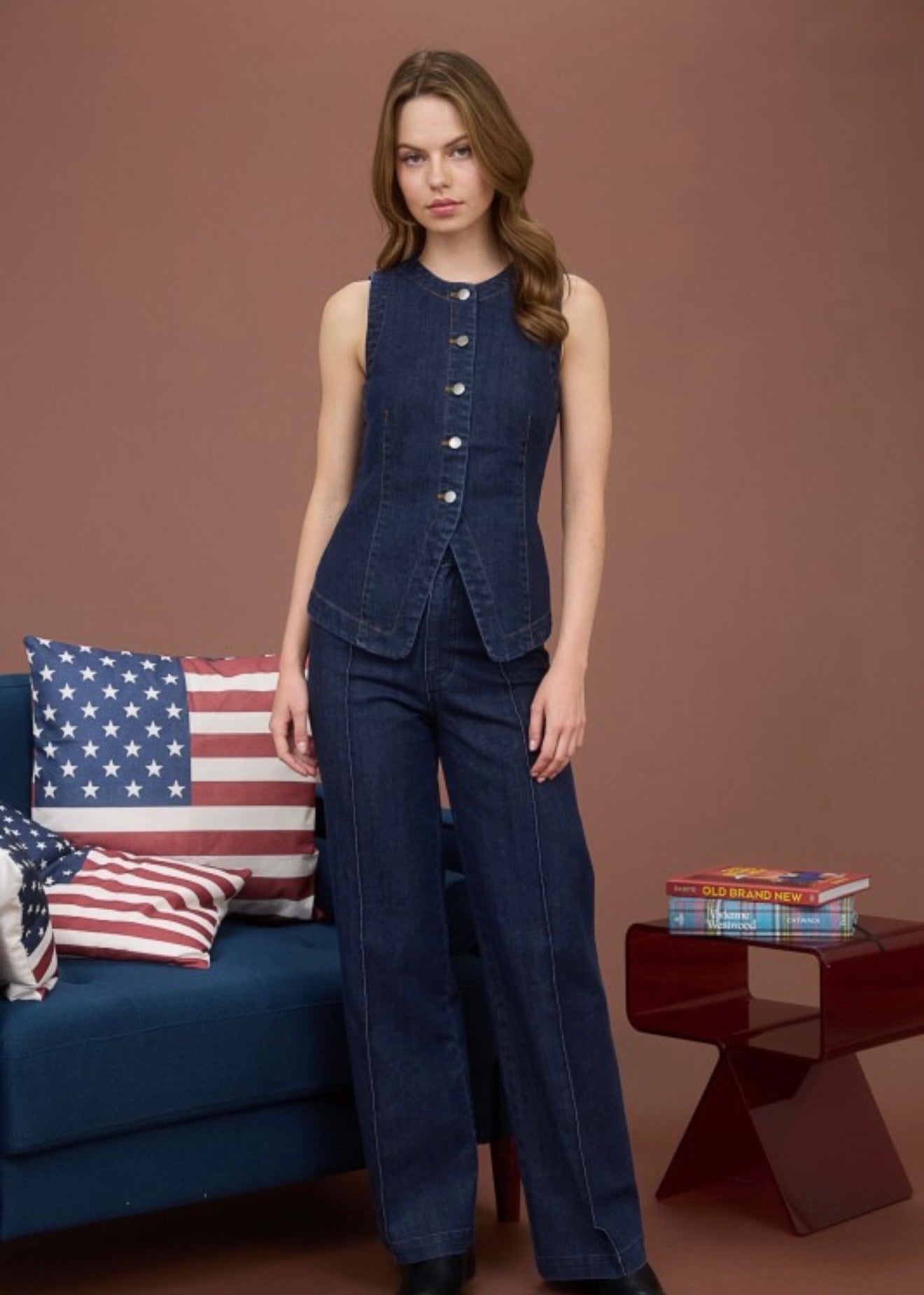 High Waist Front Seam Wide Leg Jeans.
