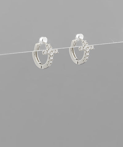 Cross Huggie Hoops