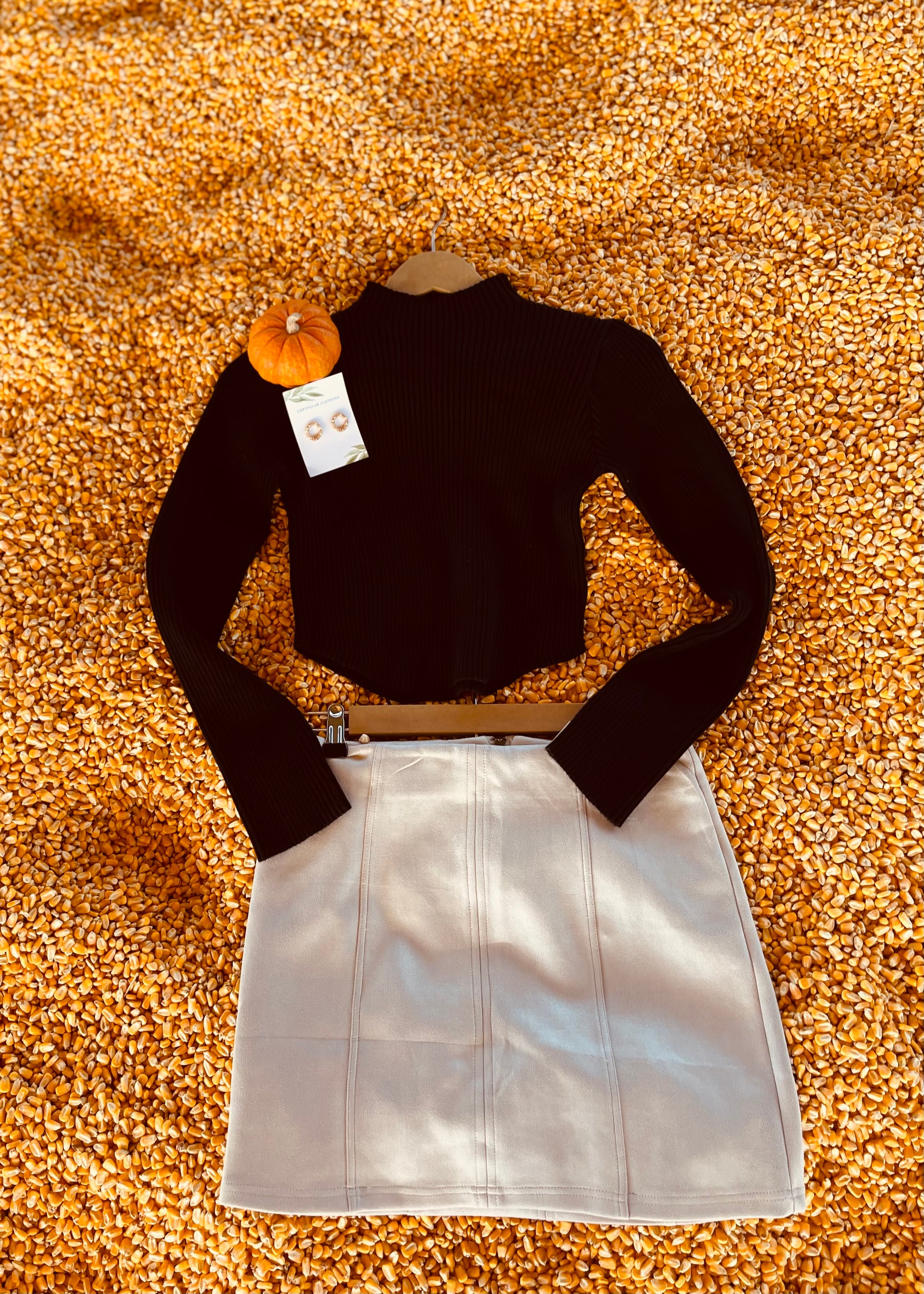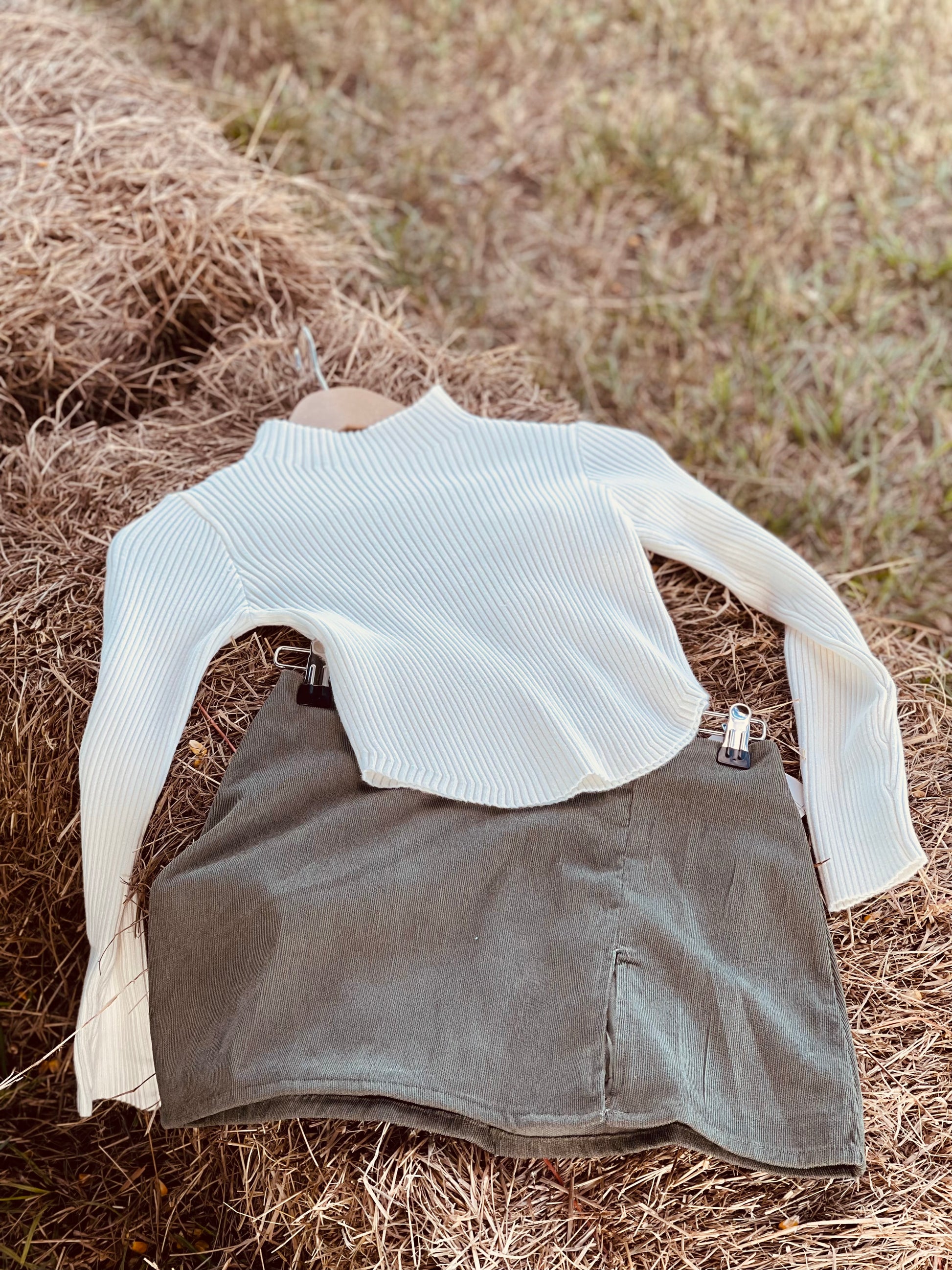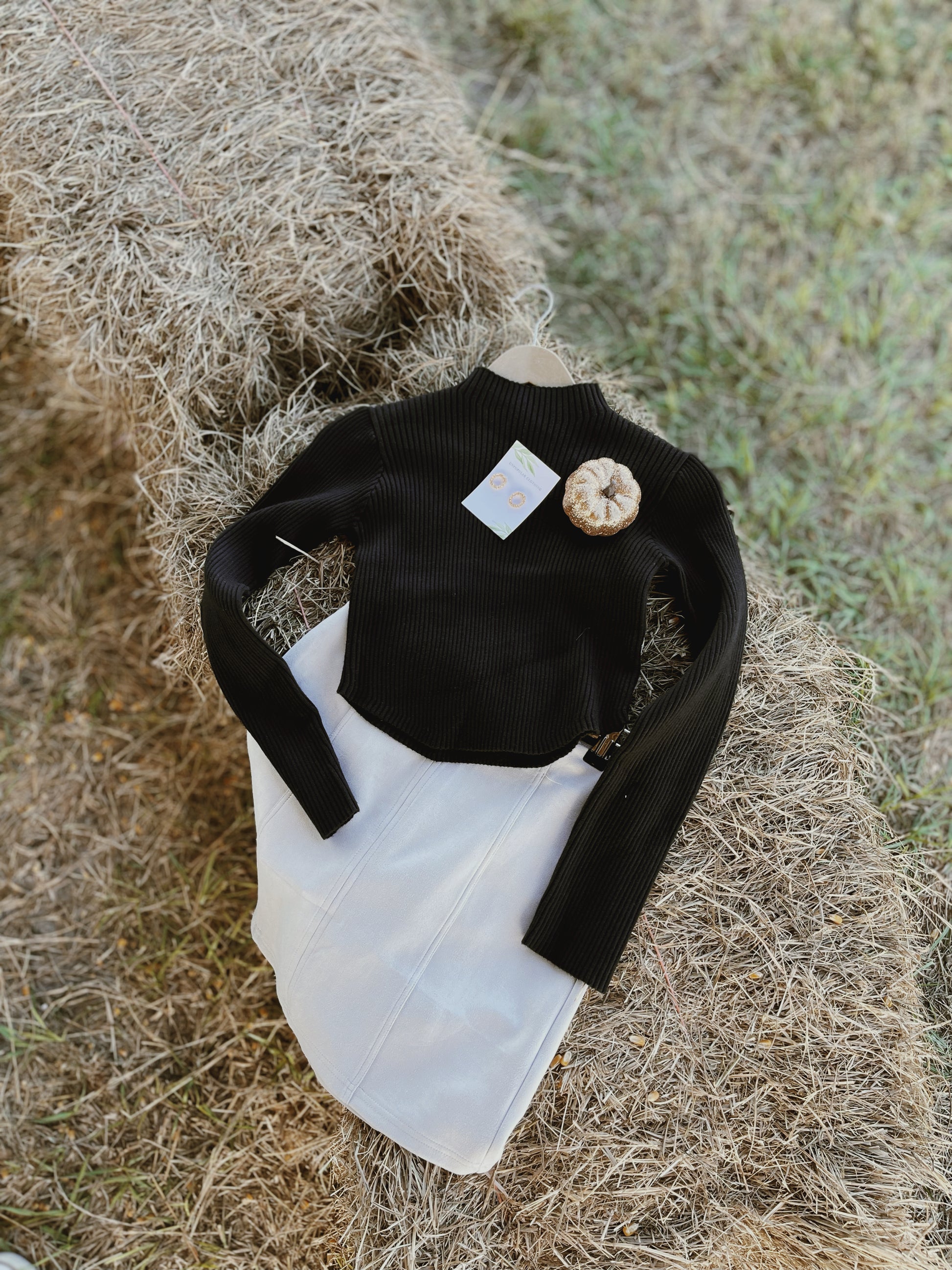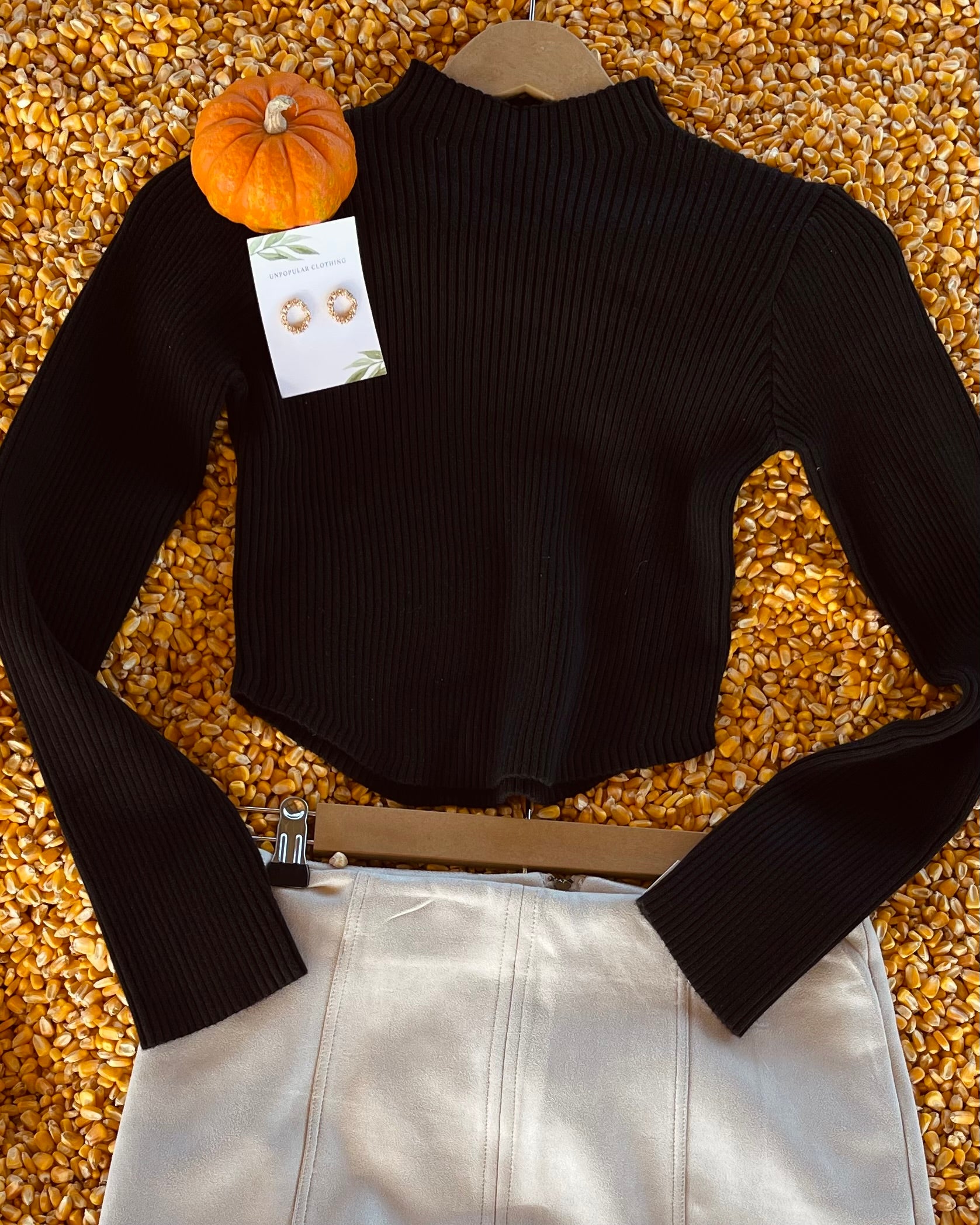 Long Sleeve, Ribbed, Mock Neck Crop Sweater.