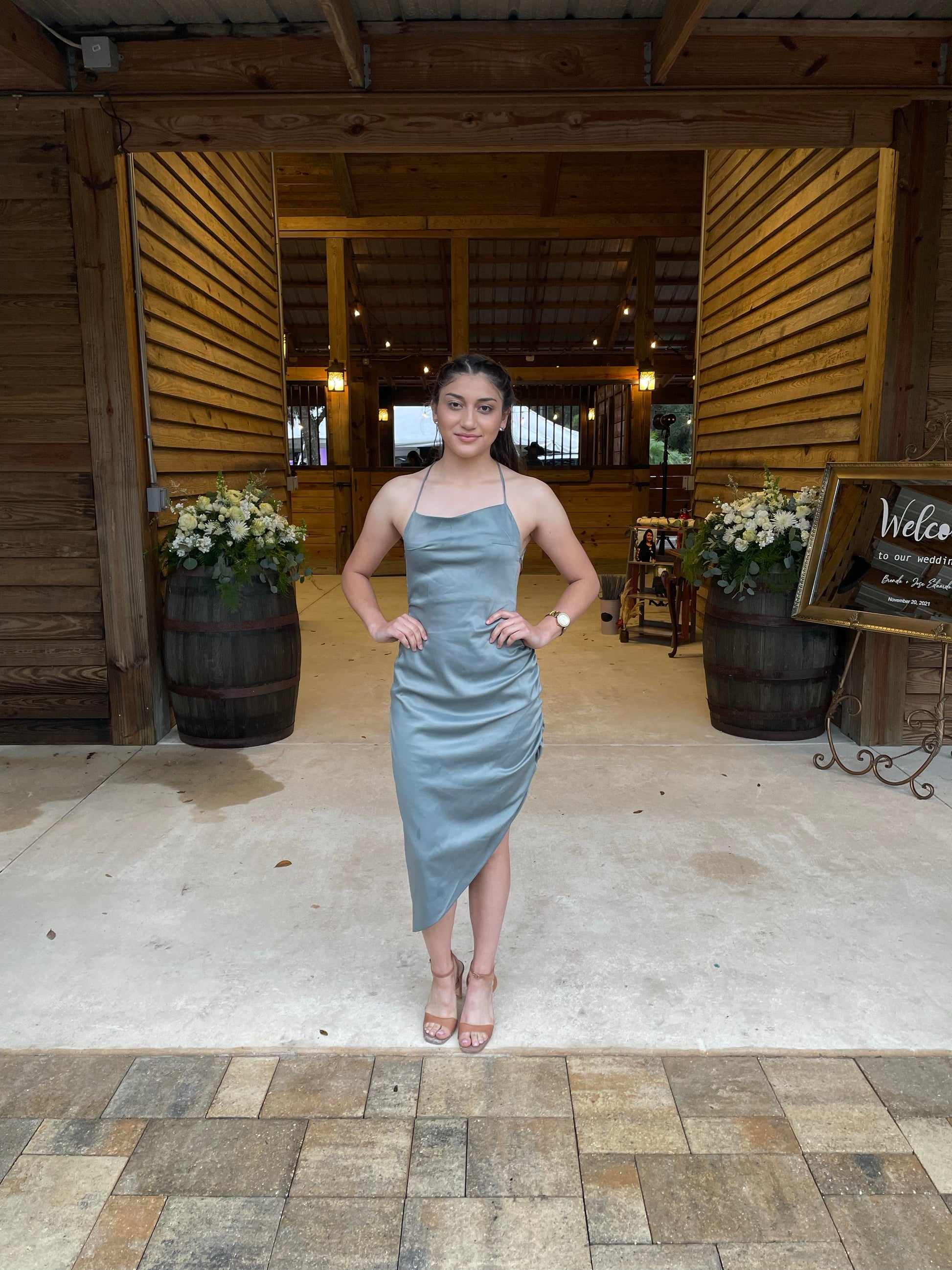 Open Back with Strap Tied Asymmetrical Hem Dress.